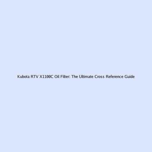 Kubota RTV X1100C Oil Filter: The Ultimate Cross Reference Guide